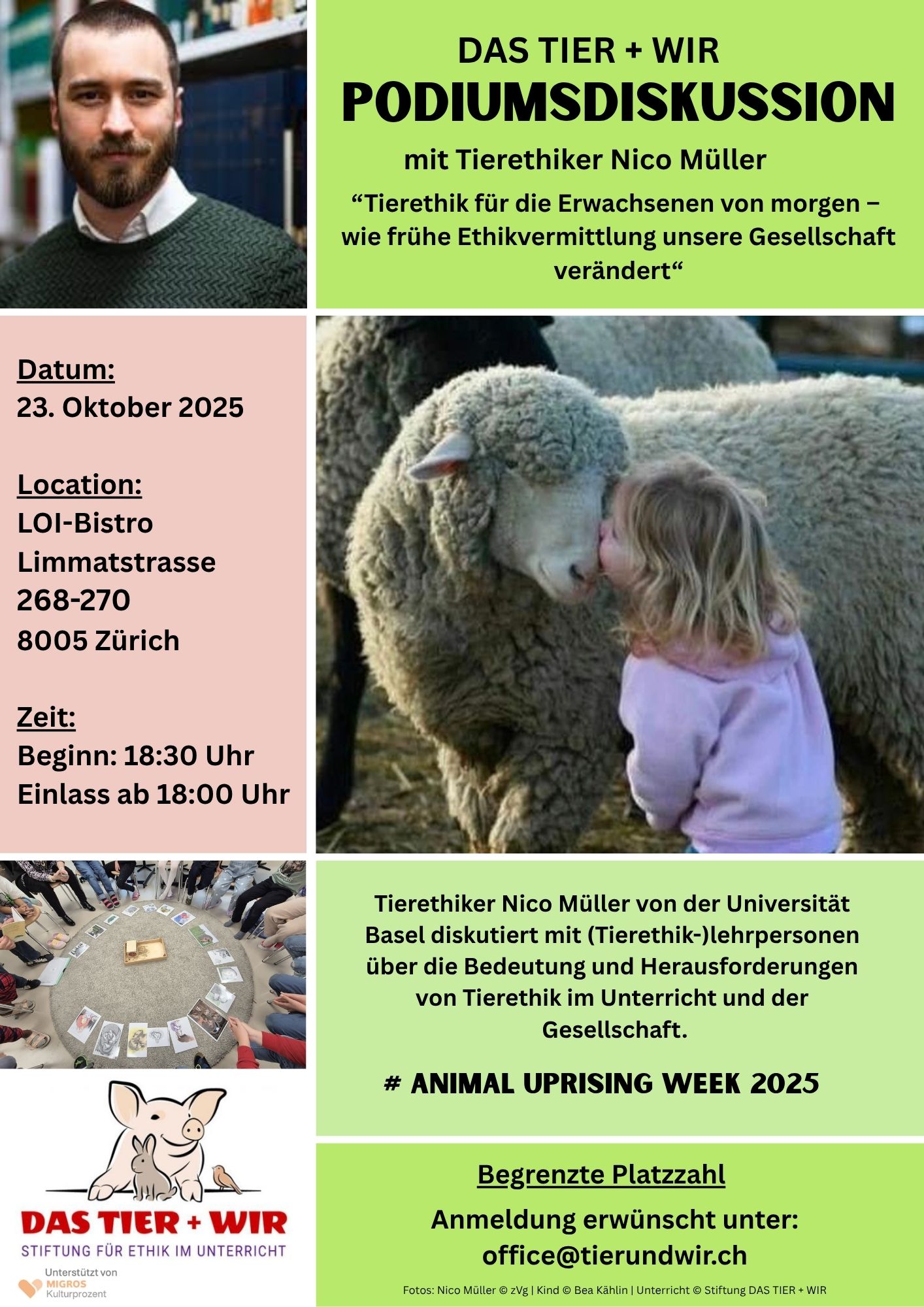 Am Donnerstag, 23. Oktober 2025 diskutieren wir im LOI-Bistro in Zürich über die Bedeutung von Tierethik im Unterricht und in der Gesellschaft.